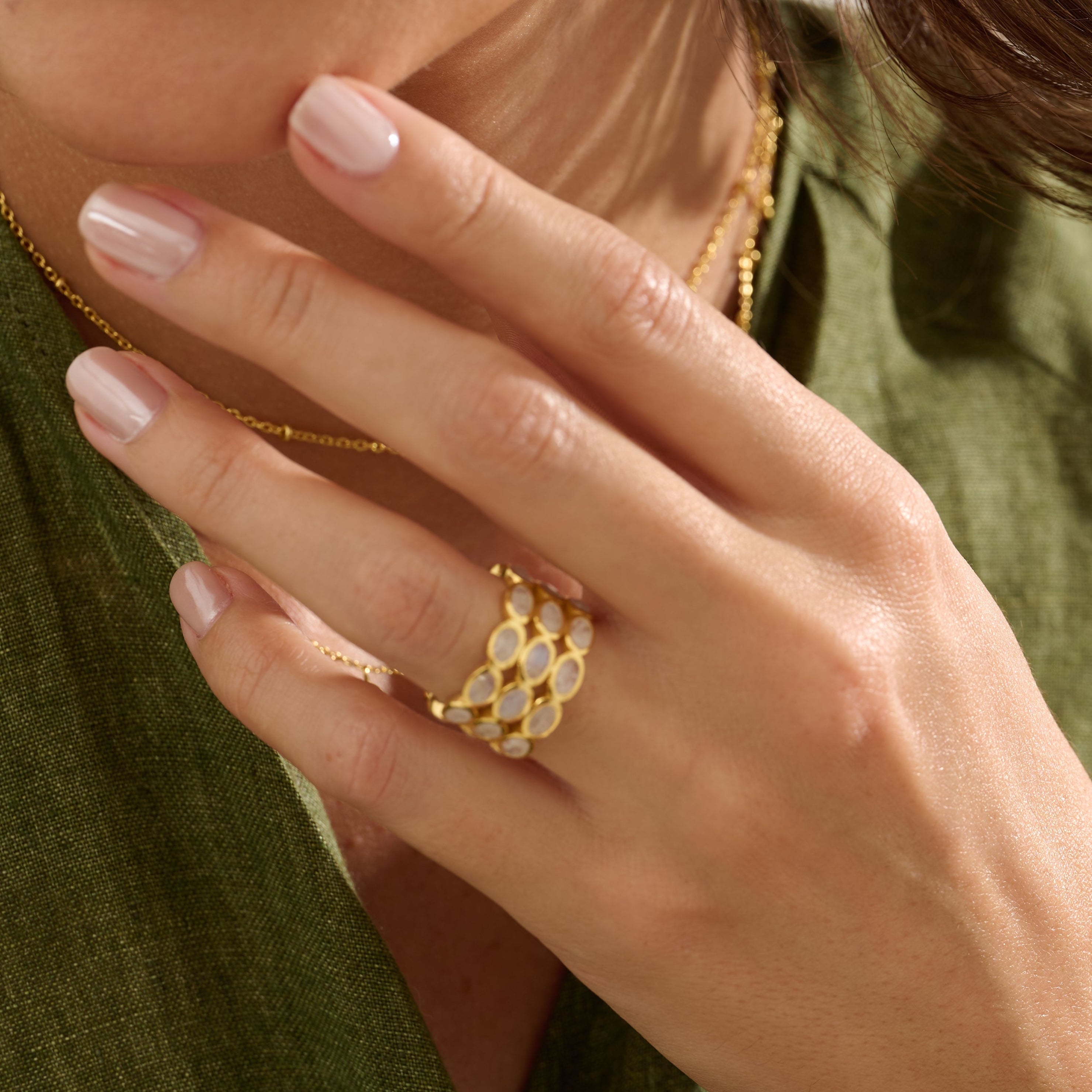 Rainbow Moonstone Ring, 18ct gold-plated sterling silver