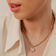 African Turquoise & Moonstone Necklace, 18ct gold-plated
