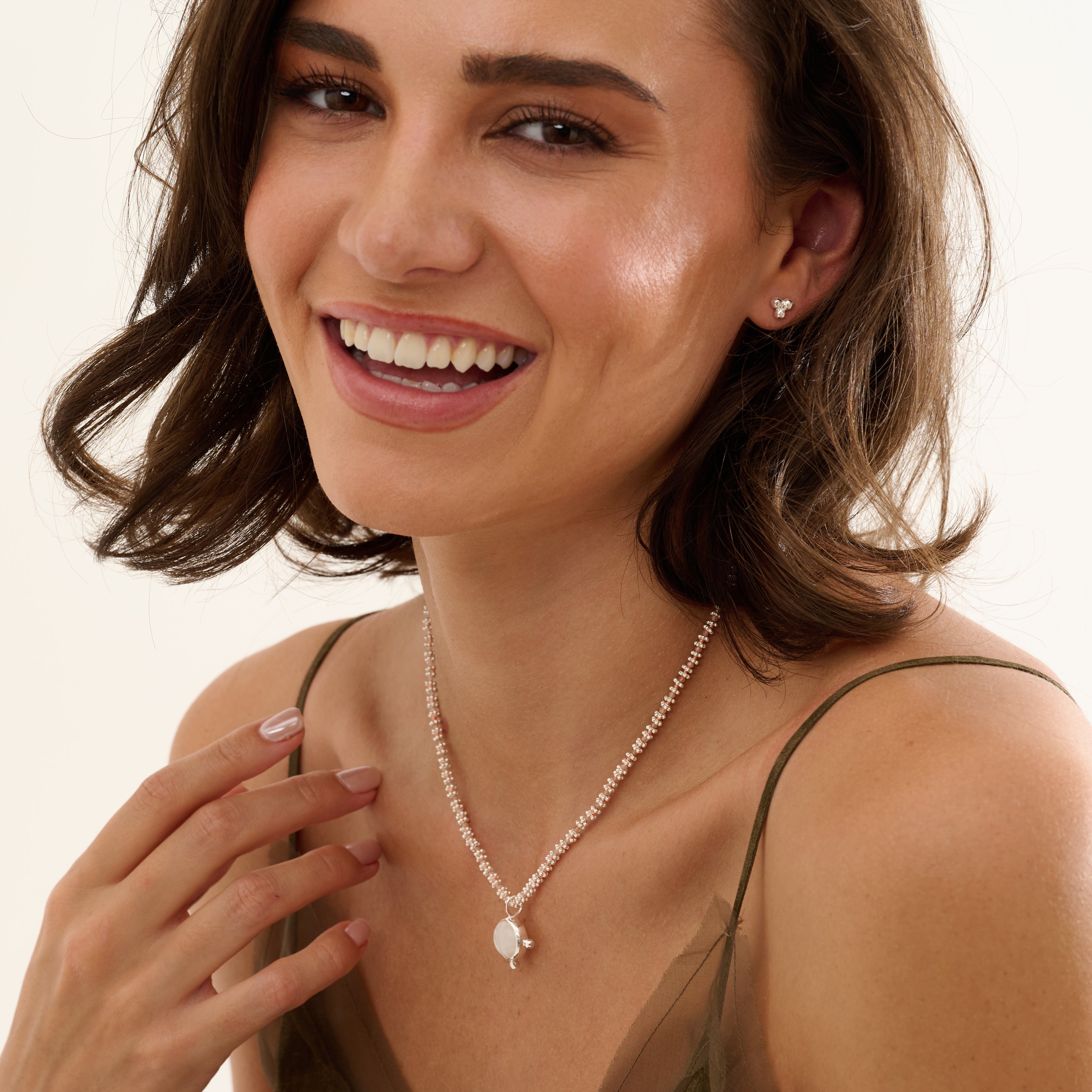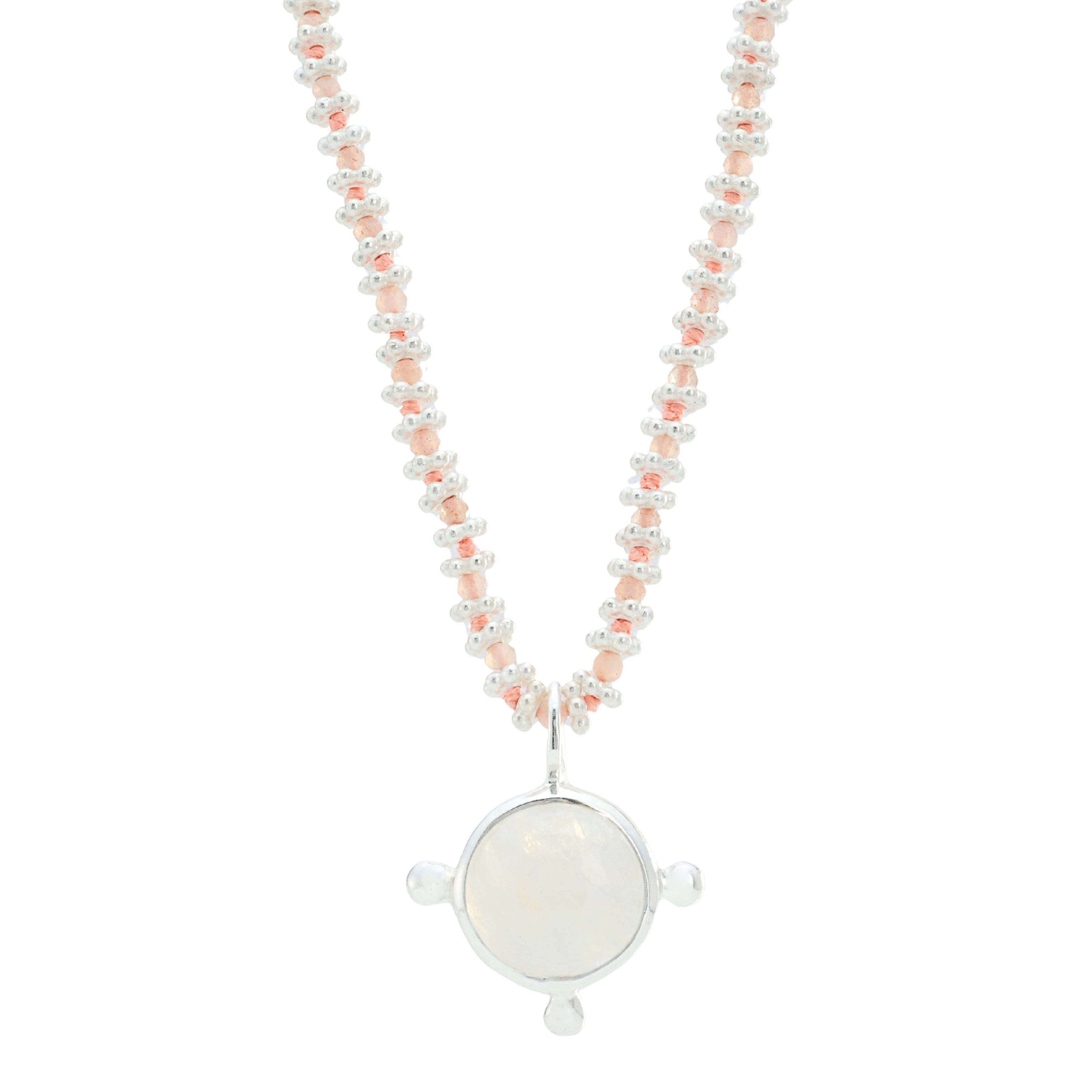 Peach Moonstone & Moonstone Necklace, Sterling Silver