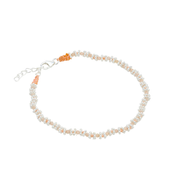 Crafted from silver, the bracelet features peach moonstone, stones that shimmer softly and invite light into every moment — a gem of intuition, feminine energy, and new beginnings.